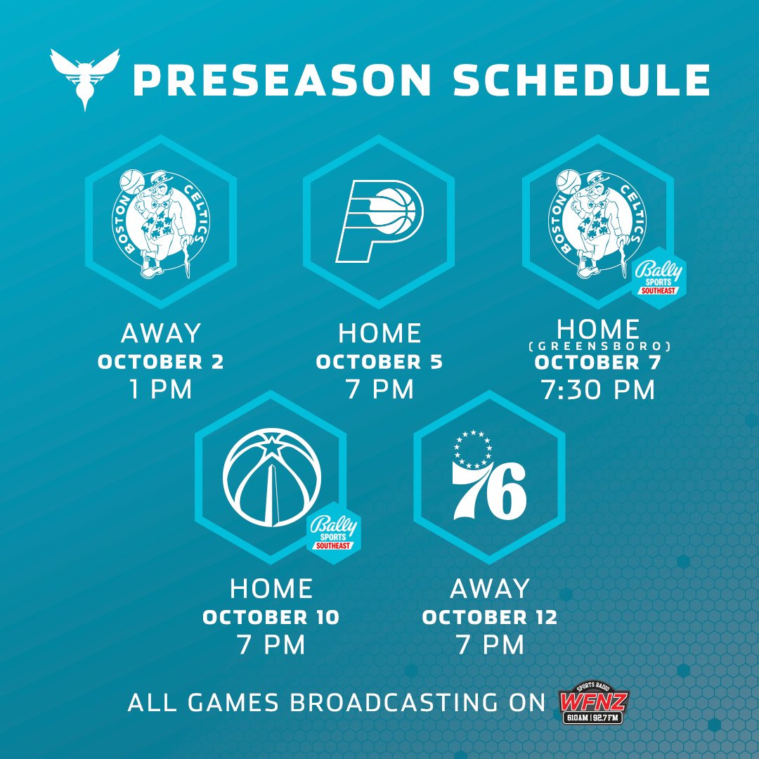The Charlotte Hornets leak one of the Indiana Pacers' preseason games, and more dates confirmed